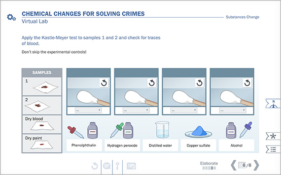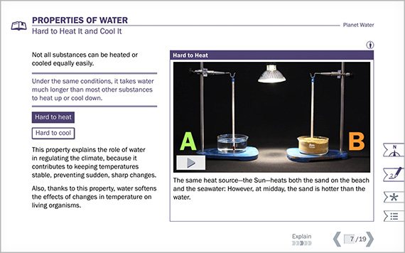 The Disciplinary Core Ideas and Crosscutting Concepts of the unit are formally presented in a systematic manner, using a wide range of multimedia resources. At this point, the ideas which have been both learned intuitively and through discovery are formalized and made universal. In addition, multiple activities introduce scientific practices in different contexts, such as analyzing and interpreting data, conducting research, and engaging in argument based on evidence. Videos, simulators, animations, interactive tables and graphs, etc. make scientific practices very easy to implement.